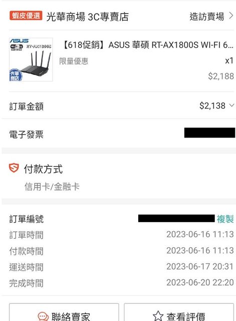 標題[賣/全國/寄送] ASUS RT-AX1800S WI-FI6 路由器