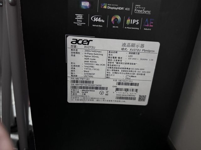 標題[賣/台北/面交] ACER XV272U P 螢幕2K 144Hz
