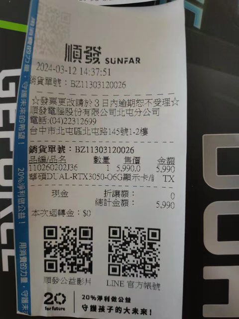標題[賣/台中/皆可] 已售出 RTX 3050 6G