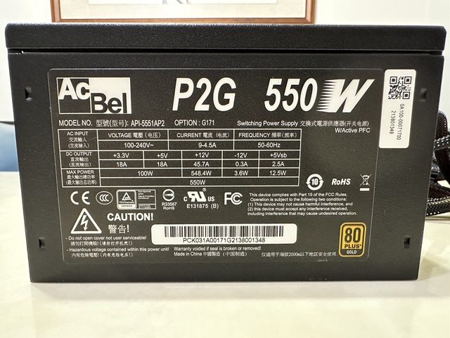 1.康舒 AcBel P2G 550W 80+ Gold Power (洽談中)