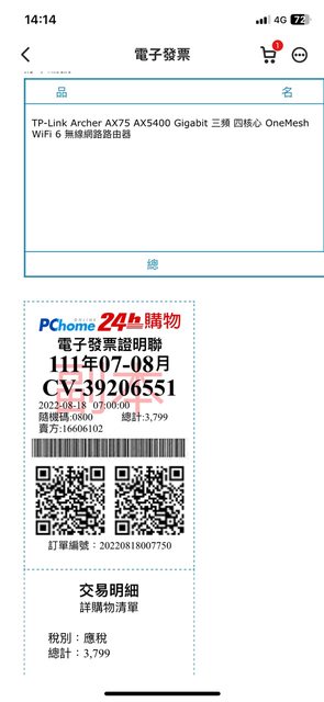 ◎硬體型號: TP-Link Archer AX75 AX5400 三頻路由器