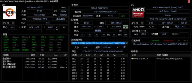 RAM:美光 筆記型 DDR4-3200 8G*2 (終保 )