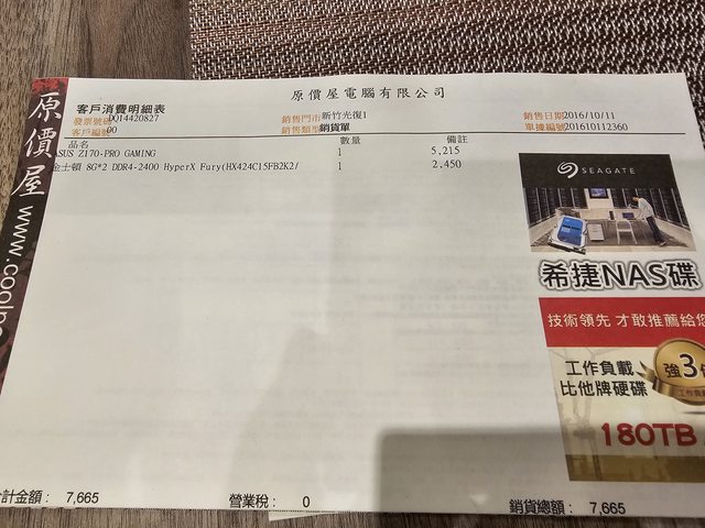 主板跟RAM 2016/10/15 購入,主板過保含擋板,RAM終保