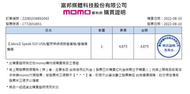 ◎硬體型號: Jabra 510 藍芽會議揚聲器