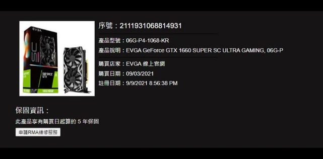 ◎硬體型號: EVGA Gtx 1660 super