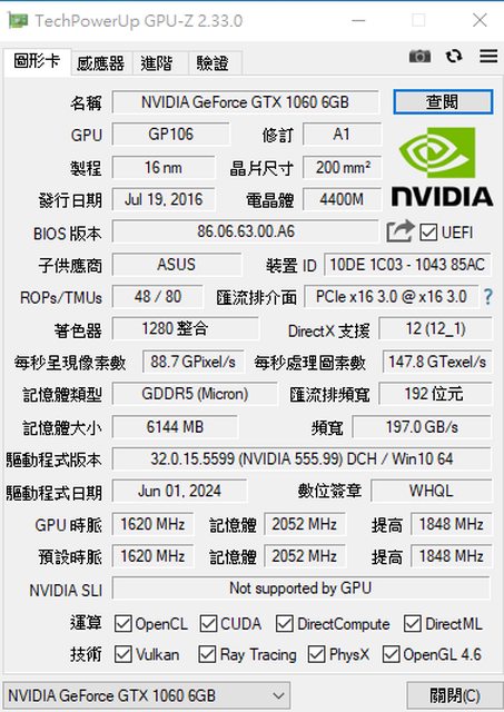 ◎硬體型號: ROG STRIX 1060 6G 三風扇