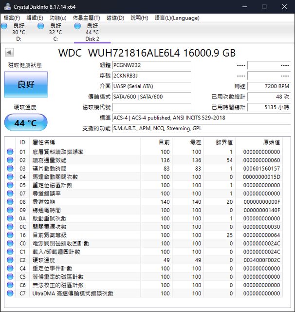 ◎硬體型號: WD HC550 16TB 捷元公司貨