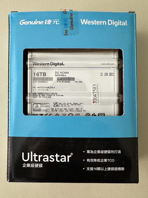 標題[賣/台北/皆可] WD HC550 16TB 捷元貨