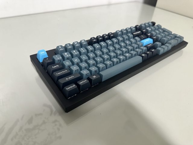 。鍵帽為PBT 熱昇華鍵帽。96%佈局,101鍵加1旋鈕。軸體為KPRO茶軸,支援全鍵熱插拔