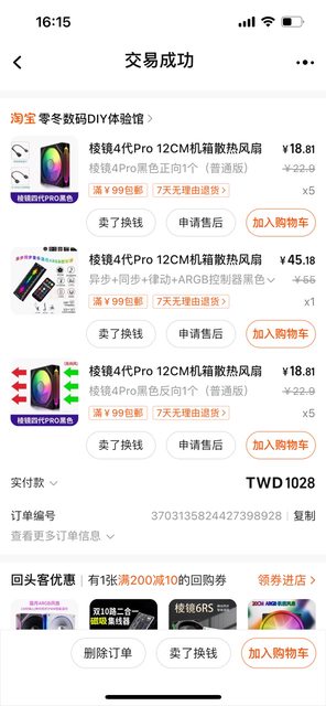 1. 2023/12淘寶購入 升級出售 部分運輸合損但風扇皆可正常使用 個保7天有問題退費