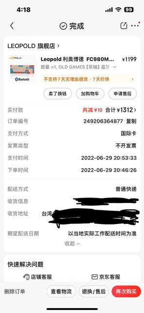 2. 全新未用,收藏而已,2022/6/29於京東LEOPOLD旗艦店購入