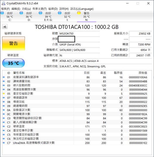 CrystalDiskInfo已有05錯誤,外觀、電路板都正常