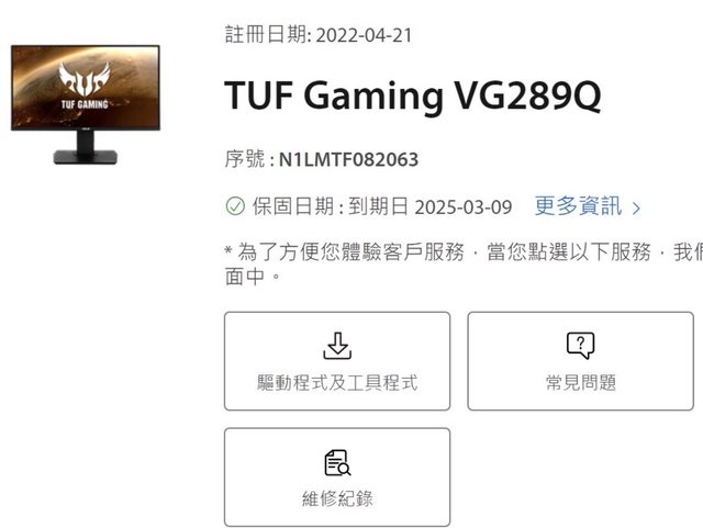 ◎硬體型號:Asus Tuf Vg289q 4k 螢幕