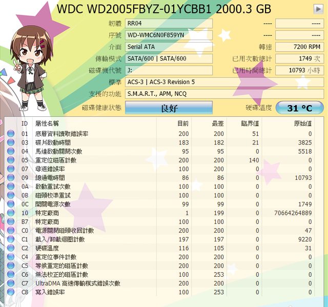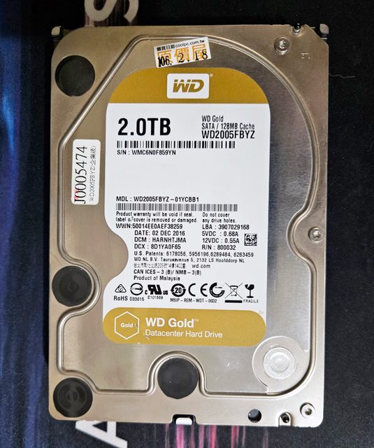 ◎硬體型號: WD 2TB HDD 金標