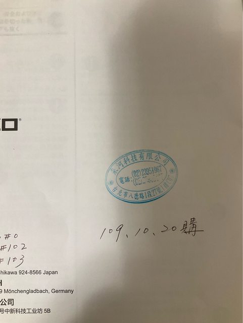 購買日期: 109/10/20