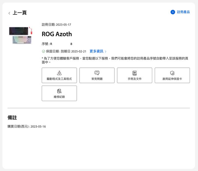 1. 主機購買日期 2023-03-29 於欣亞線上購入