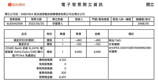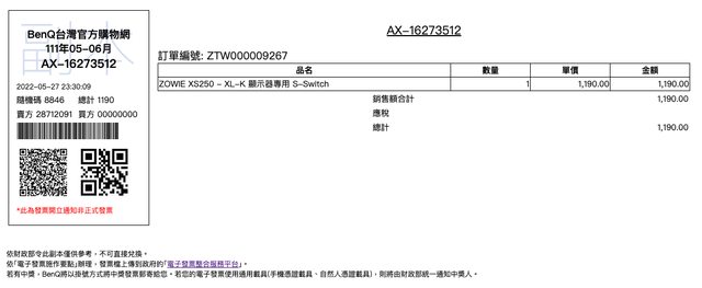 ZOWIE 螢幕是 2022-05-25 於蝦皮購入,2022-05-27 於官網額外加購 S-Switch