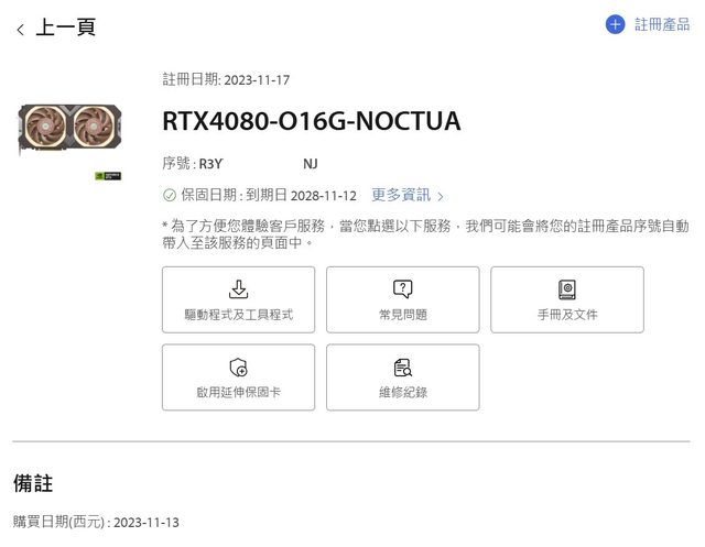 1. 2023/11/17購入上機,2024/07/13停機拆下;5年保內