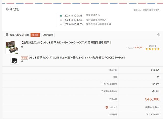 標題[賣/全國/皆可] 貓頭鷹RTX4080顯卡Noctua顯示卡
