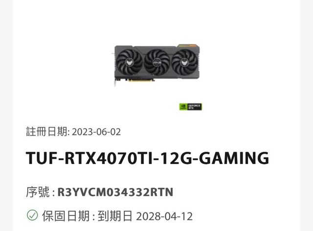 4070TI 保固到2028/4/12