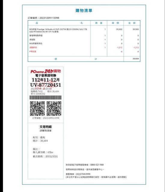 ◎發票或購買憑證有無: 有
