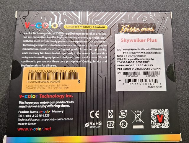 v-color 全何 Skywalker Plus 系列 DDR4 4000 64GB (32GBx2) 桌上型超頻記憶體