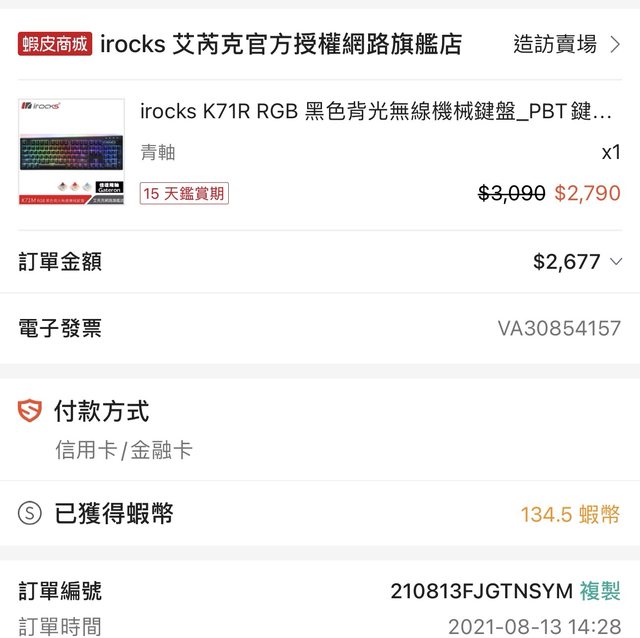◎硬體型號: iRocks K71R 黑色青軸無線