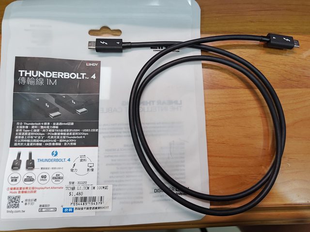◎硬體型號:Lindy Thunderbolt 4 1M 傳輸線