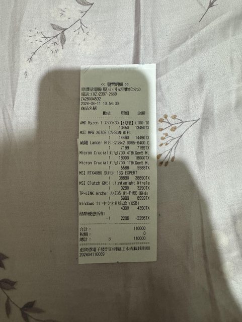 ◎硬體型號: MSI X670E CARBON WIFI