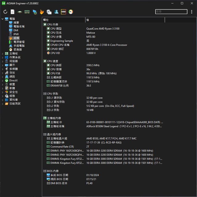 使用AIDA64 主機板正常