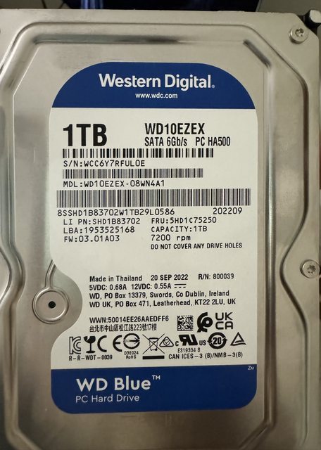 HDD WD 藍標 3.5 1TB:
