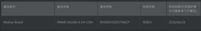 目前用捷元或展碁查不到保固,其他代理商沒辦法直接線上查序號就沒特別查了