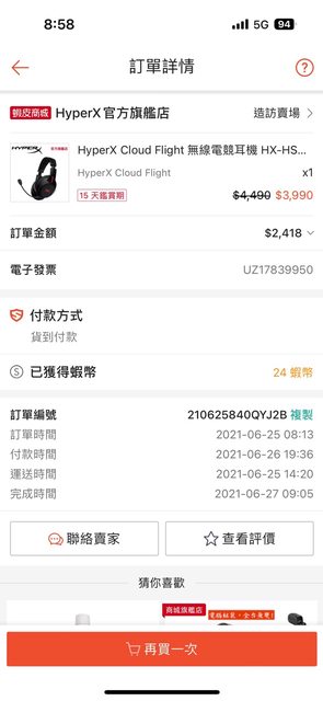◎品樣狀況: 1.2021/6/25蝦皮官方商城購入