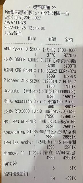 2.2022年4月原價屋購入(發票遺失,使用正常),捷元總代理
