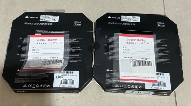 2. Dominator Platinum RGB 8G DDR4 3600 x 2 ,有2組
