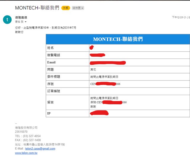 2. 保固至2031/7 壓力測試是使用此顆power執行的 期間無關機無重啟