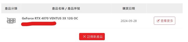 ◎硬體型號:1. 4070 MSI ventus 3x 12G OC