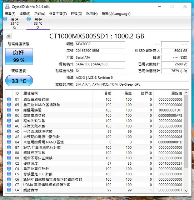 - 硬碟:美光mx500 1T 2.5吋 sata ssd