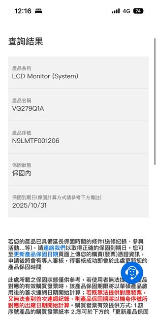 2022/10月 原價屋購入,保固到2025/10/31