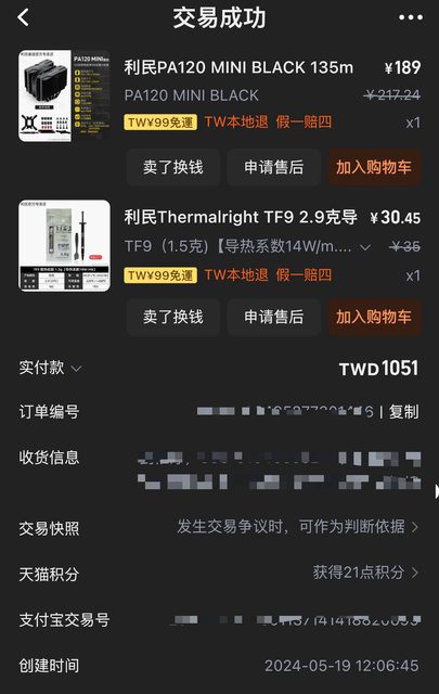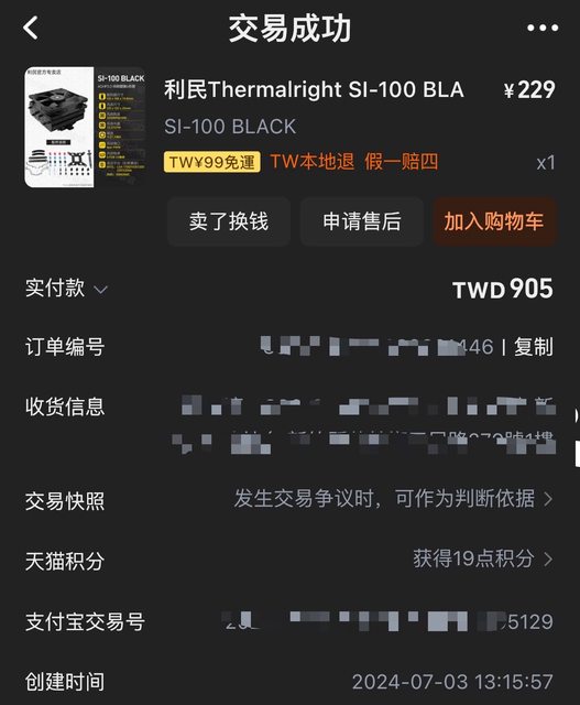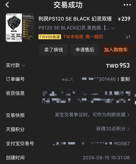 上述散熱器是今年五月到八月間從淘寶購入,視為無保固。除塔體之外配