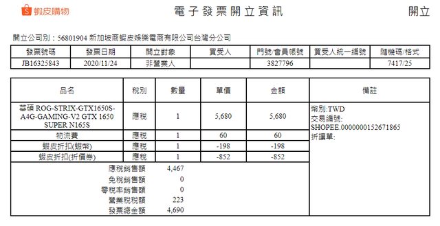 標題[賣/全國/皆可] 華碩 ROG STRIX GTX 1650S 4G OC
