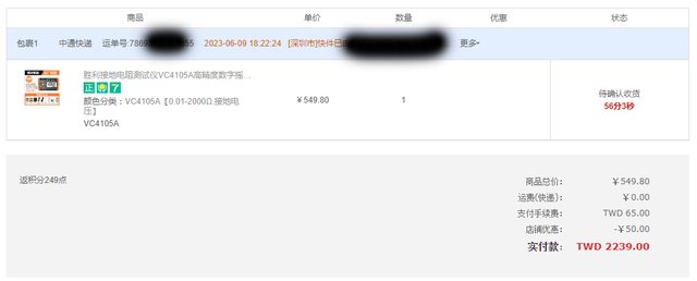 1.產品型號:勝利 VC4105A 接地電阻測試儀 2.欲售價格:1700元 (購入價 2510元 = 本體2239元 + 私人集運271元) 3.購買時間、地點:2023年6月、勝利旗艦店 淘寶天貓