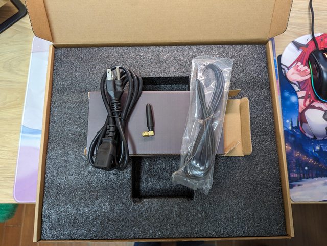 打開盒子後先看到配件盒,內附電源線、藍芽天線、USB線