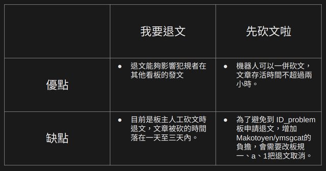 推 hsakuya: 現在模式應該是水桶同時先不砍文 等版主上來砍+退吧?支04/19 17:52