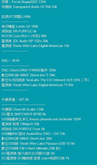 推 quillmane: 不過高檔訊號線平衡的二手價比較好也好脫手就是了 05/18 22:44