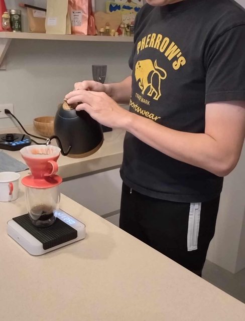 他在泡咖啡期間 我順便跟他請教了一些泡咖啡的相關事宜