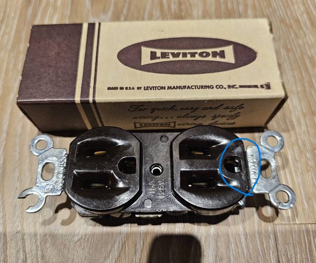 3. LEVITON 1970年代古董插座 美國製造 戰損版
