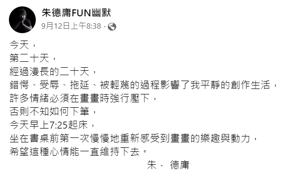推 ZILY123: 朱德庸的fb真的狂戳餒 明明天天發正能量的語錄結果實質上 09/19 18:52