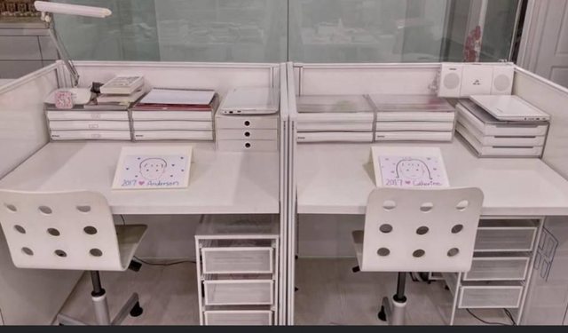 二個是獨立的可以分開,請忽略桌子上的雜物,跟文件櫃,只有桌子本身。到時會拆開