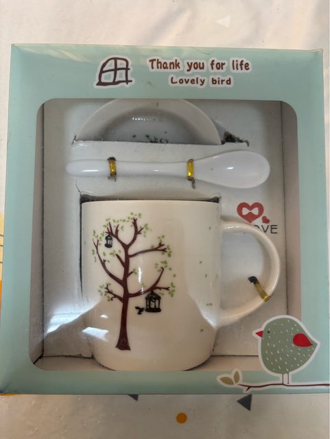 4.全新馬克杯,但因為放了很久,所以內部還是有髒污需要清潔,杯子的邊緣也有點微泛 黃